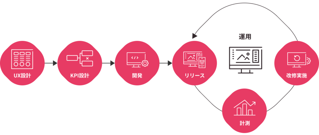 ソニックムーブでは要件定義段階から、このようなUXをベースにした改善サイクルを視野に入れて設計を行います。
