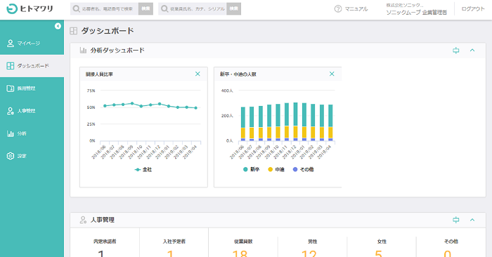 「ヒトマワリ」は求人管理・人事管理という、企業にとって重要かつ複雑な業務を効率化することを目的としたサービスです。採用応募者に関連する面接や説明会の情報や、人事台帳に関連する異動や評価履歴などの、多様な「人」の情報を整理し、採用・人事担当者はもとより、経営層が次にすべきアクションを自然に行えるような設計を致しました。