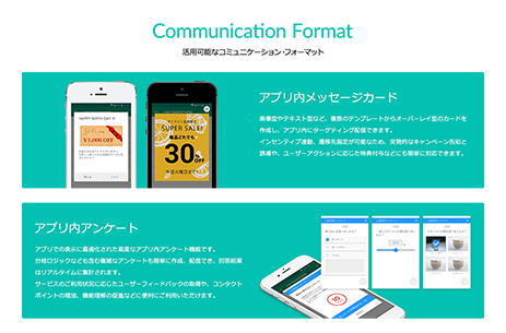 ・アプリ内メッセージカードやアプリ内アンケートなどを目的に応じて配信
