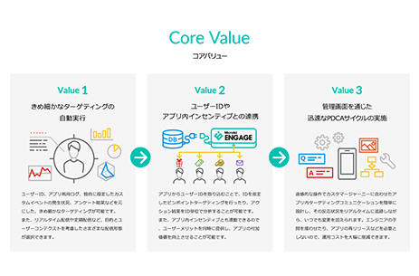 MicroAd ENGAGEを利用することにより、以下の様に複数のアプローチでアプリユーザーへ施策を行うことができます。