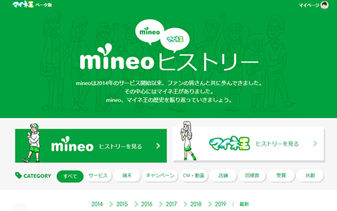 mineo・マイネ王の歴史を1ページで表現。パララックスを用い通、多くの情報を扱い、ジャンルや年ごとの横断もありながら、軽やかな挙動を実現しています。