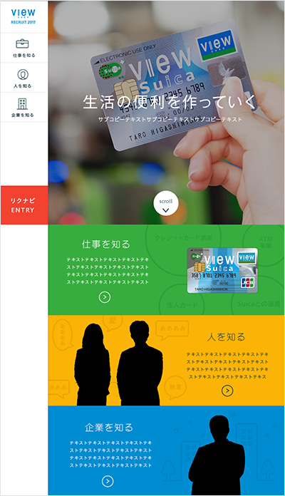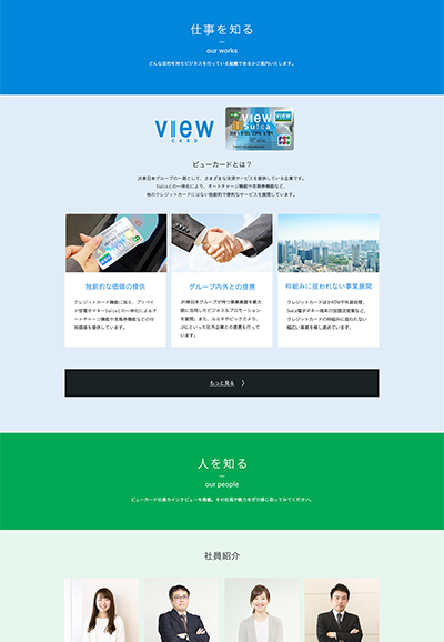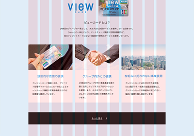 また、ページ全体に色が増えることで全体的に明るくなり、一定の落ち着いたトーンを保ちつつも活発なイメージのあるサイトになりました。ビューカードさまのコーポレートアイデンティティ(CIカラー)を元に配色しているので、企業イメージを保持した上でのデザインを成立させています。