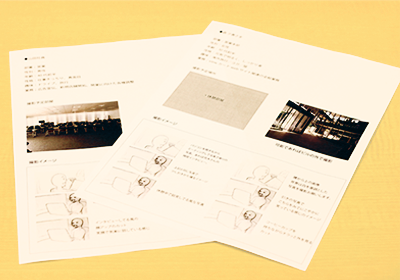 撮影は、事前に絵コンテを準備。プロのカメラマンとの意思疎通を図り、デザイン方針からブレないよう撮影ディレクションを行いました。